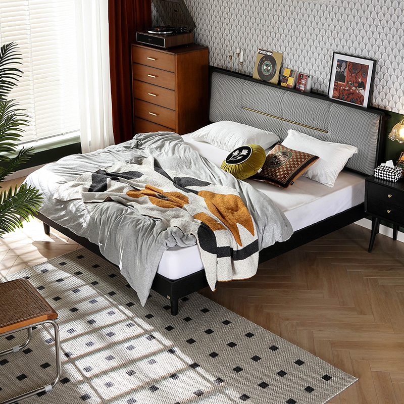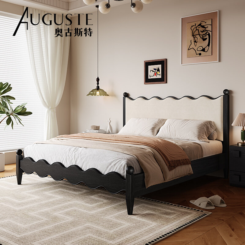 侘寂风实木主卧双人床现代简约布艺床卧室大床1.5米轻奢意式极简