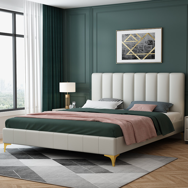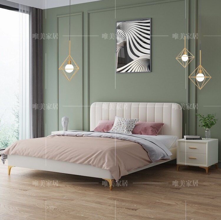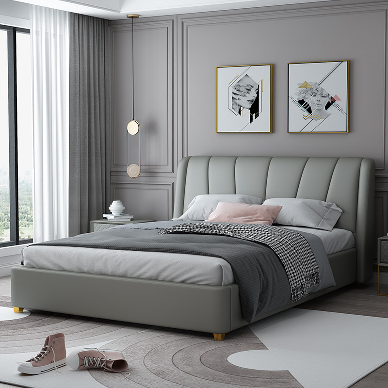 美式轻奢布艺床现代简约双人床高靠背床主卧婚床北欧小户型真皮床