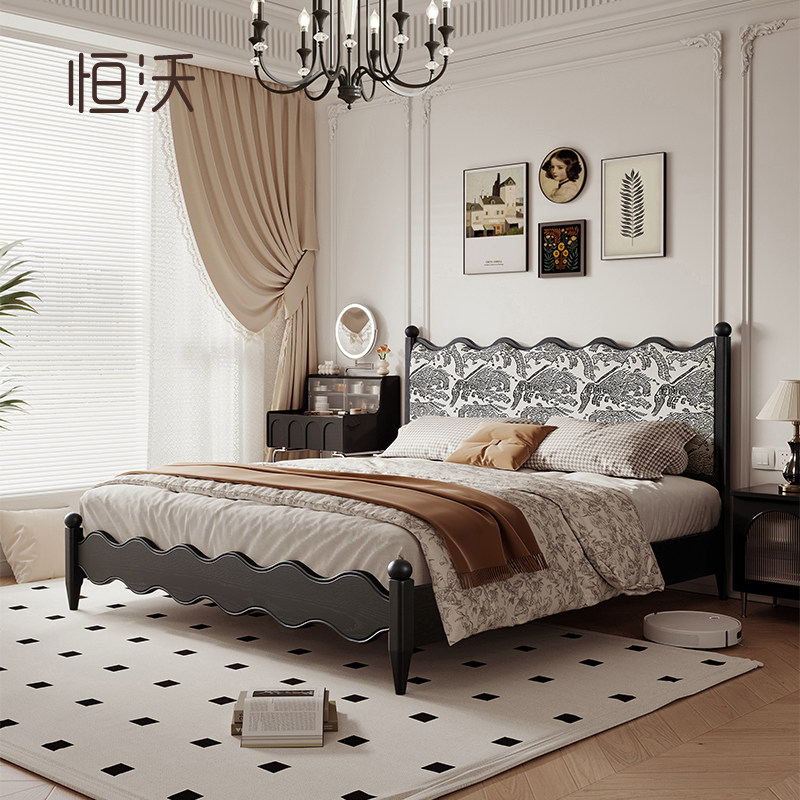 现代轻奢美式实木床简约布艺婚床1.5/1.8m单双人床 全屋组合家具