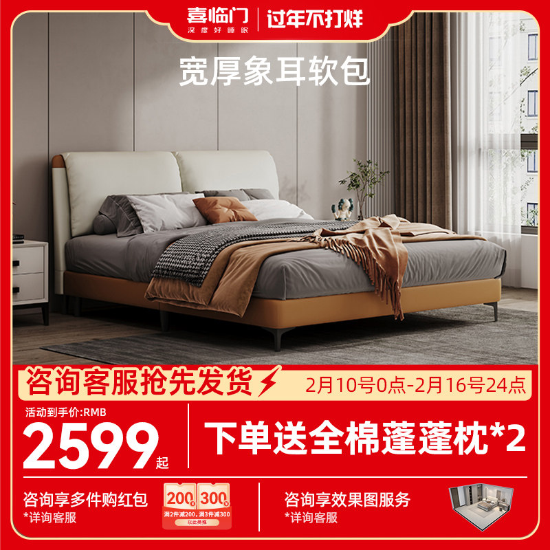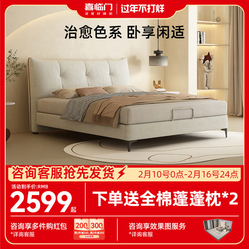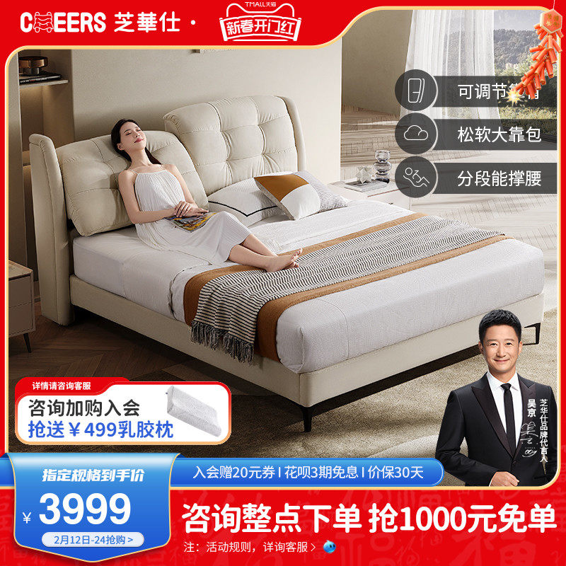 芝华仕科技布艺床现代简约大象耳朵奶油风互不打扰主卧软包床C303
