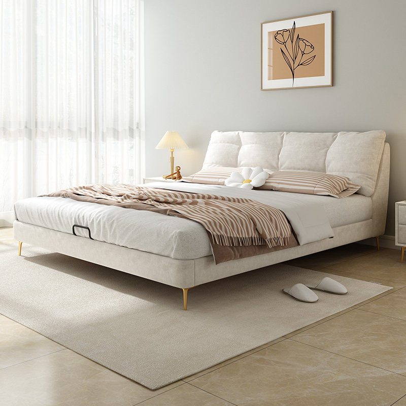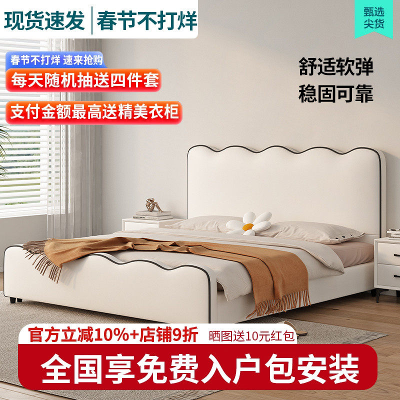 北欧轻奢科技布床现代简约奶油风布艺床主卧室云朵床ins风仙女床