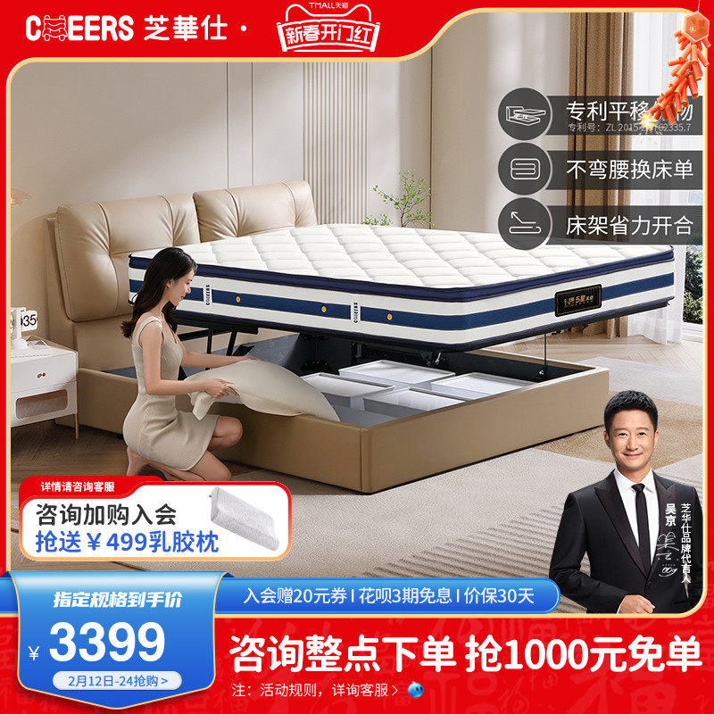 芝华仕科技布现代简约主卧布艺床高端大气互不打扰双人悬浮床C389