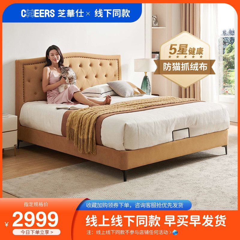 芝华仕绒布现代简约主卧防猫抓布艺床高端大气互不打扰双人床C398