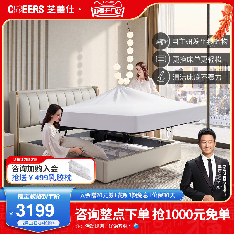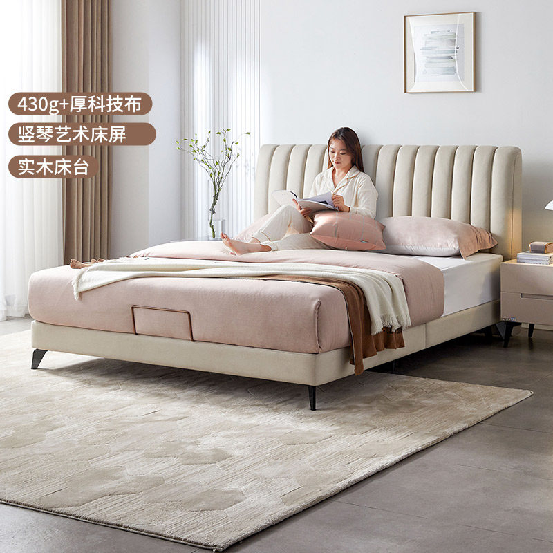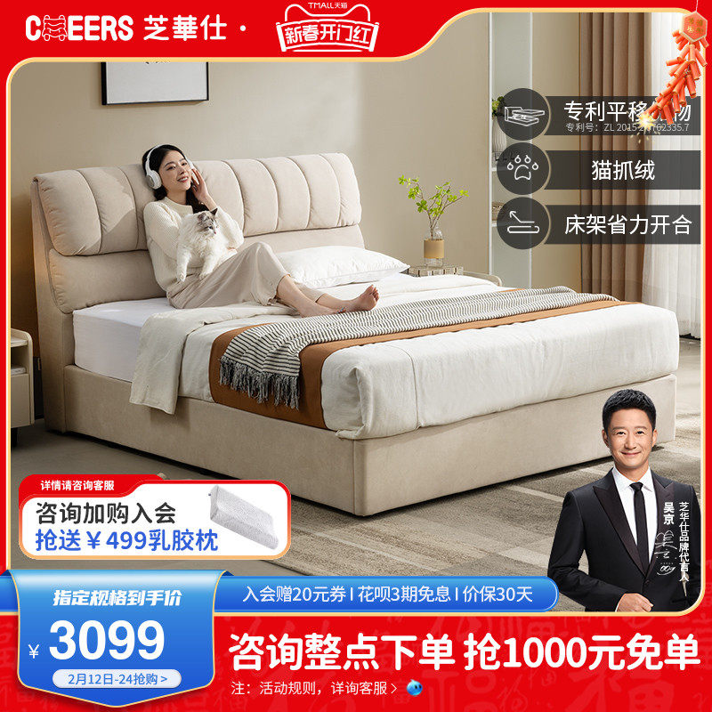 芝华仕科技布艺床现代极简轻奢互不打扰双人奶油风储物软包床C397