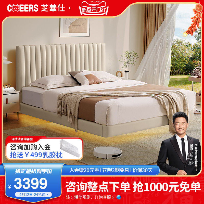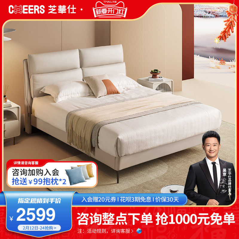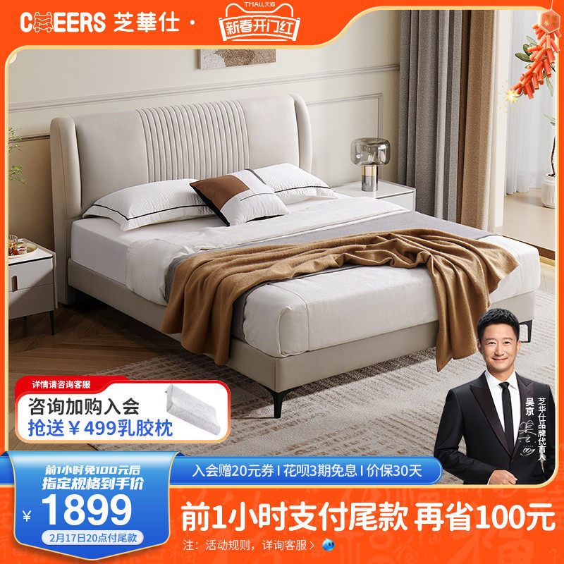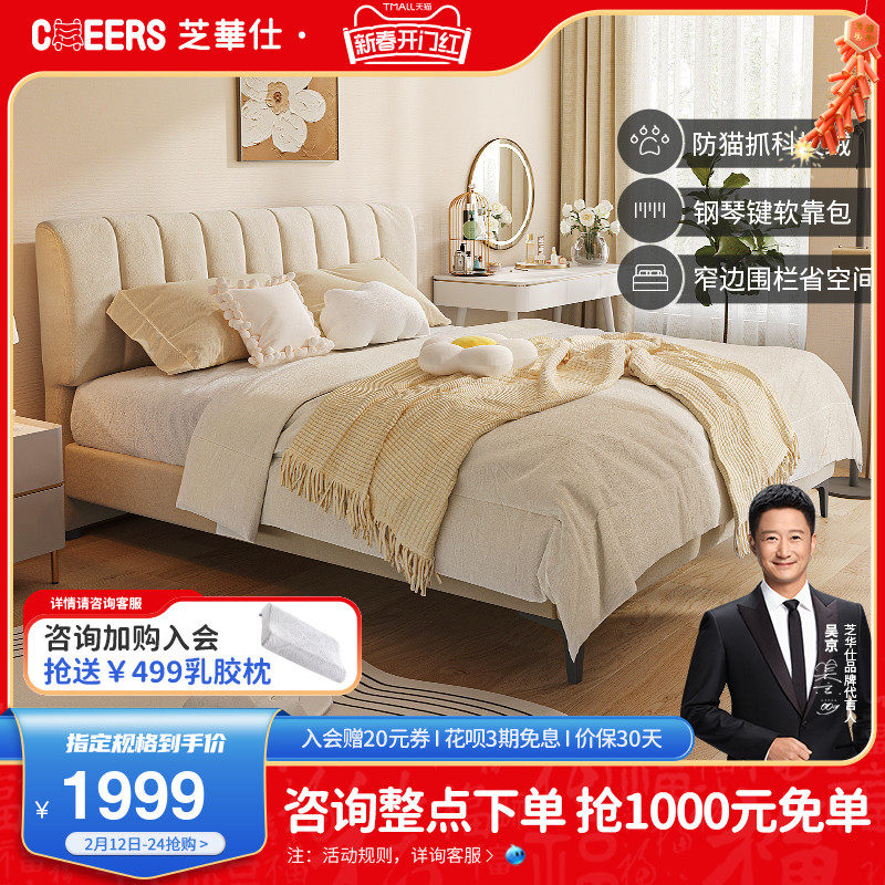 芝华仕奶油风现代科技布艺床主卧大床软包1.8m互不打扰双人床C357