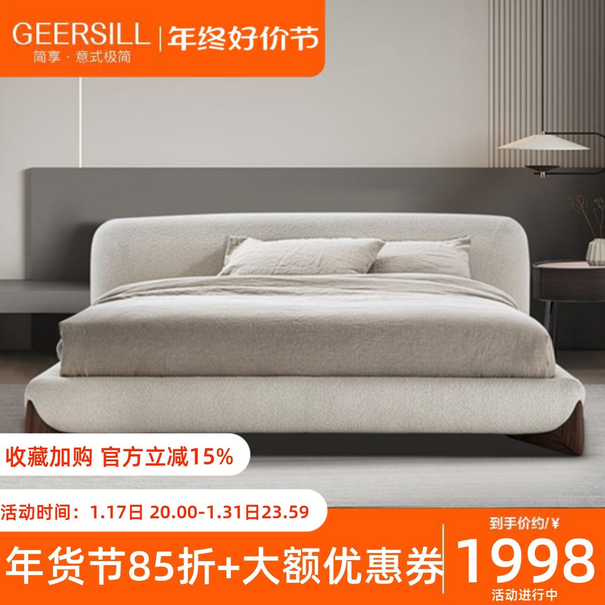 羊羔绒新款泡芙布艺床现代奶油风科技布床侘寂风小户型超软双人床