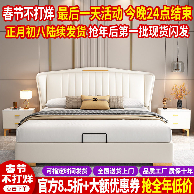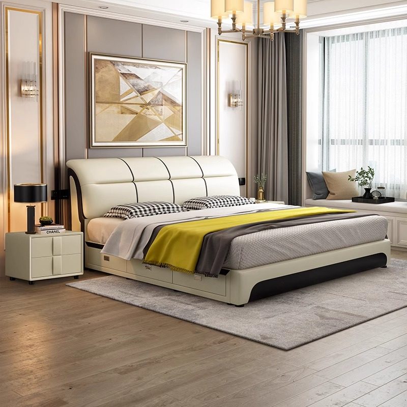 法式复古主卧软包床轻奢小户型简约双人皮床奶油风储物高箱布艺床