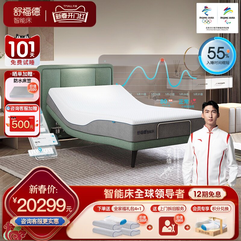 TopSleep娱乐智能床高级多功能零压力安全电动床可升降布艺悬浮床