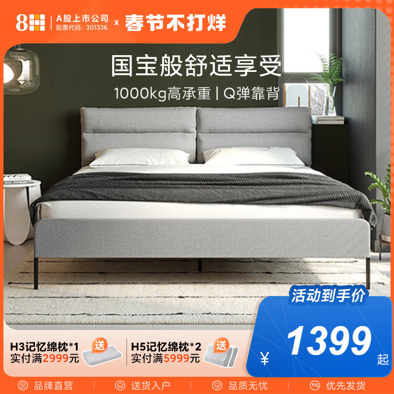8H软包床简约现代轻奢布艺床ins卧室床1.8米主卧室大床单双人床