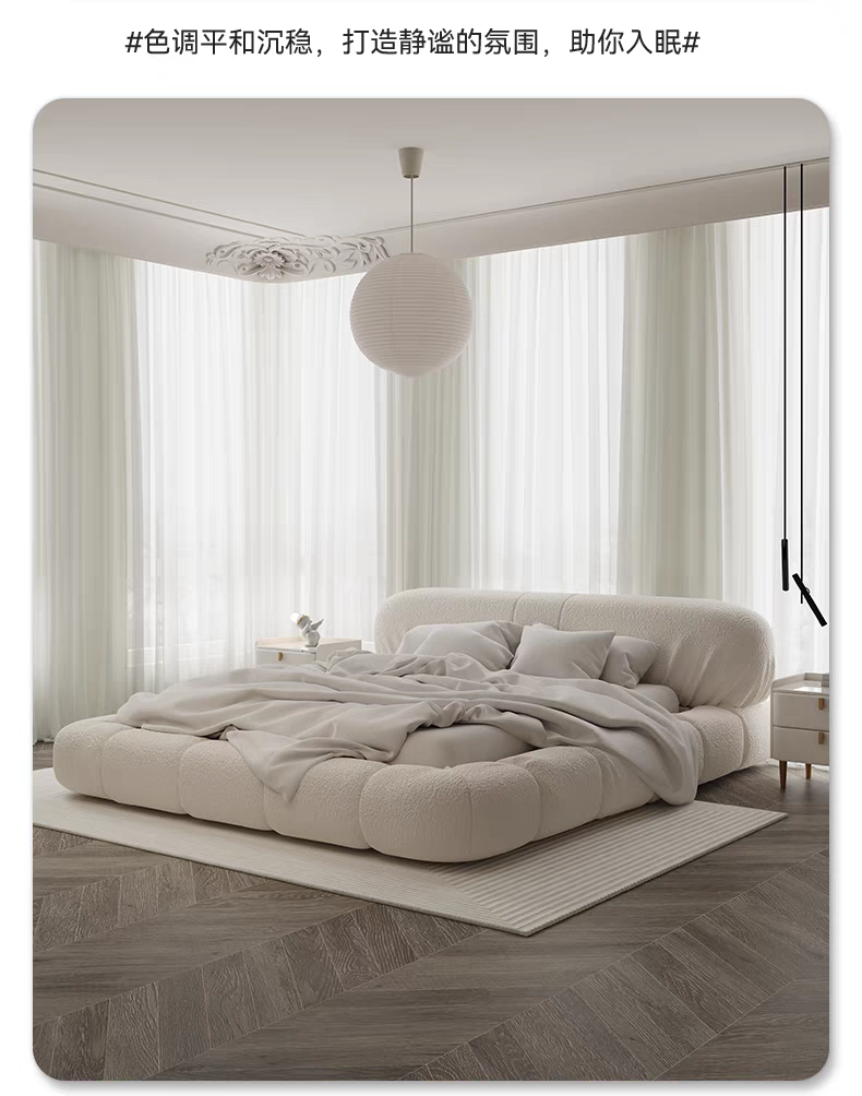意式棉花糖双人床羊羔绒白色主卧泡芙床法式奶油风布艺床高端大床