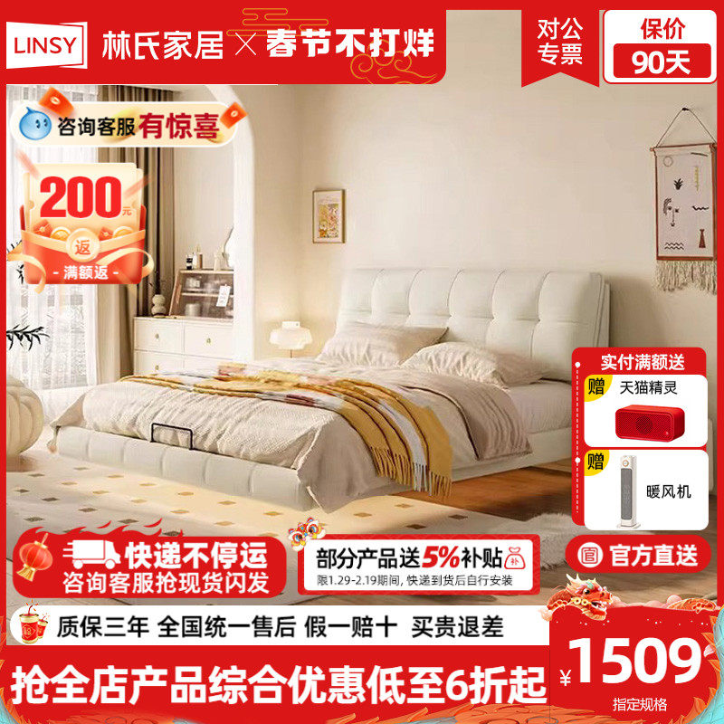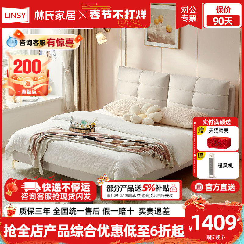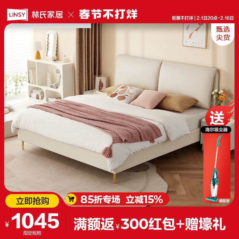 林氏家居主卧室奶油风布艺床家用简约猫爪皮悬浮床林氏木业TBC129