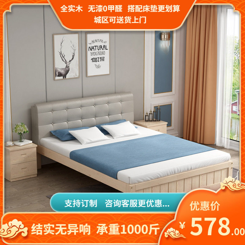 软包床实木床可拆洗皮革布艺出租房单人床现代简约新品靠背定制床
