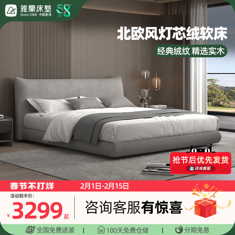 复古风灯芯绒软包床北欧家具卧室1.8m双人床美式简约轻奢布艺床