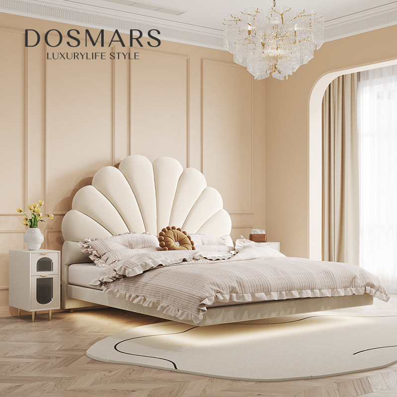 法式花瓣床奶油风悬浮床主卧女生床公主床女孩卧室布艺床现代简约