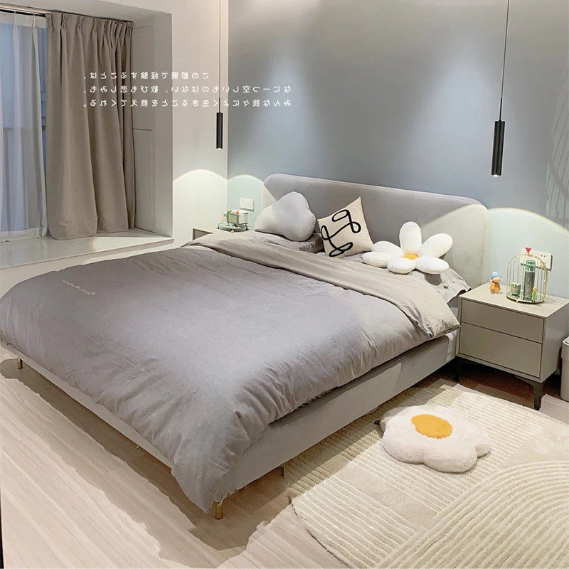 侘寂风科技布艺床现代简约轻奢网红款别墅主卧大床北欧风奶油系床