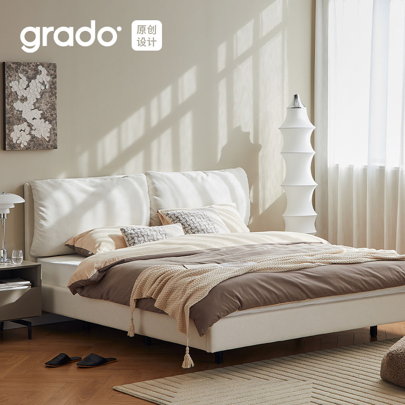 格度奶盖床奶油现代简约靠背可拆卸双人卧室舒适小户型北欧布艺床