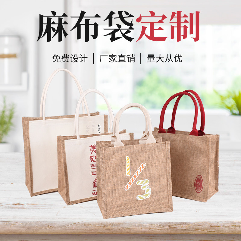 麻布袋定制logo环保棉亚麻购物手提袋diy改造饭盒包便当袋帆布包