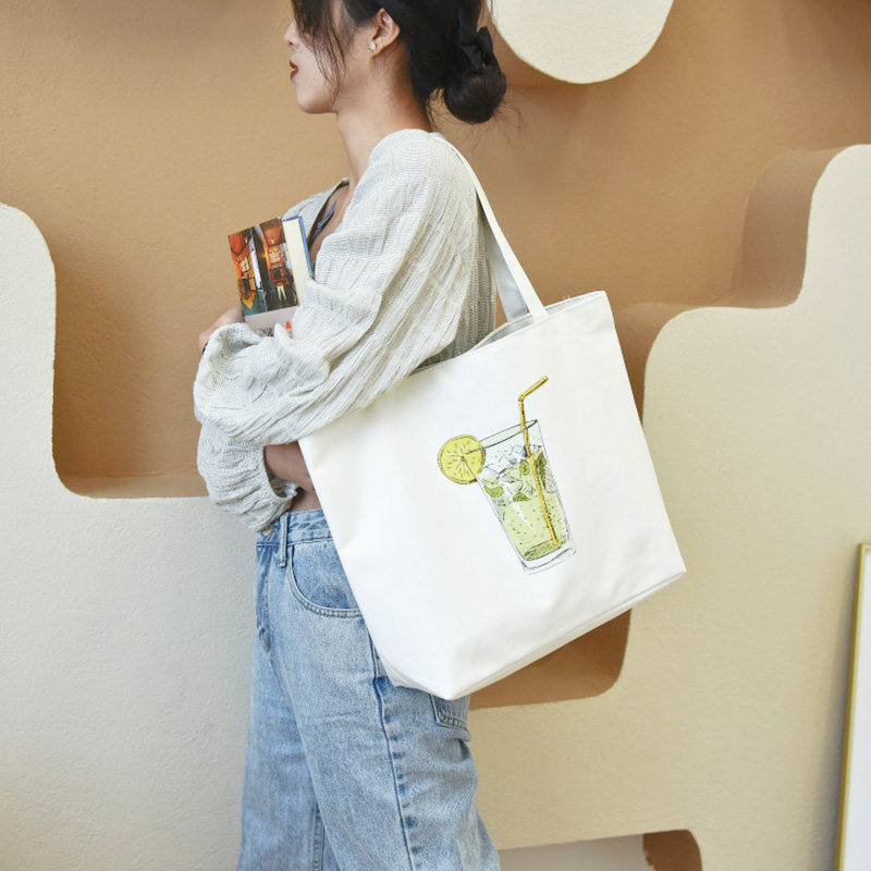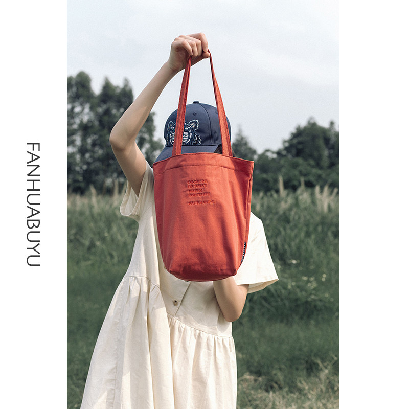 原创小众新款2023手提帆布包男女夏上课大学生通勤外出单肩环保袋
