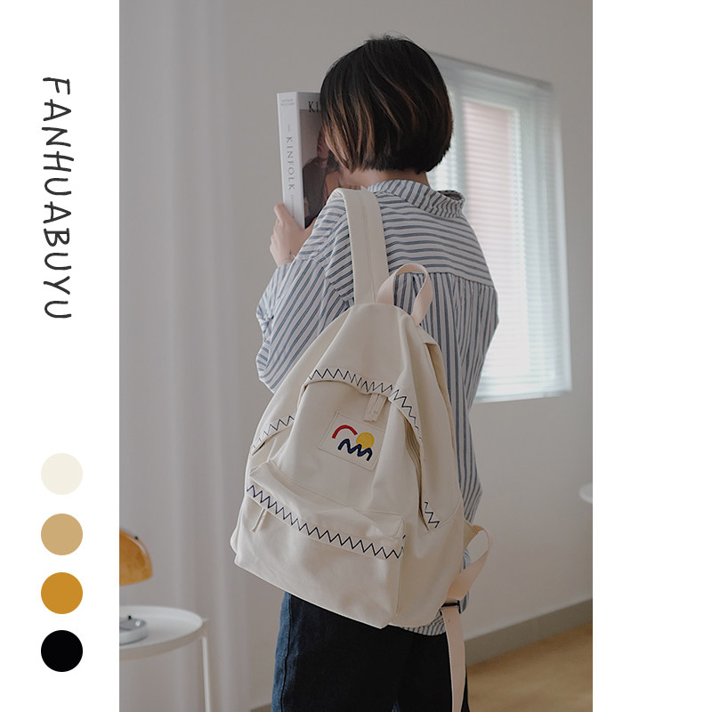 梵花不语简约帆布双肩包2023年新款高中生书包女韩版原宿学生背包