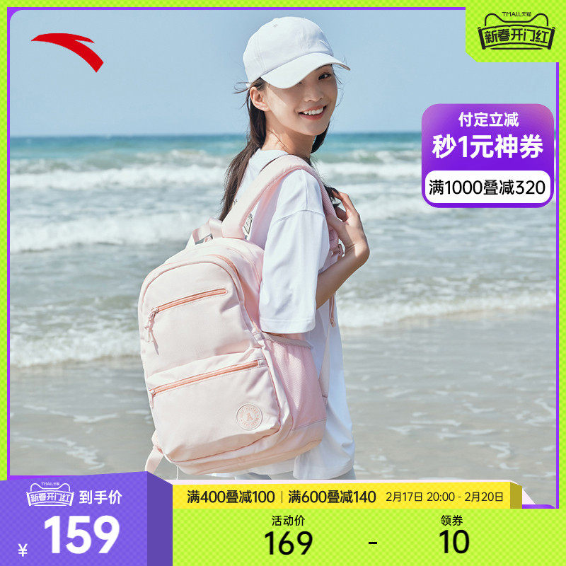 安踏双肩包春季新款男女黑色帆布包运动背包通勤包书包官方正品