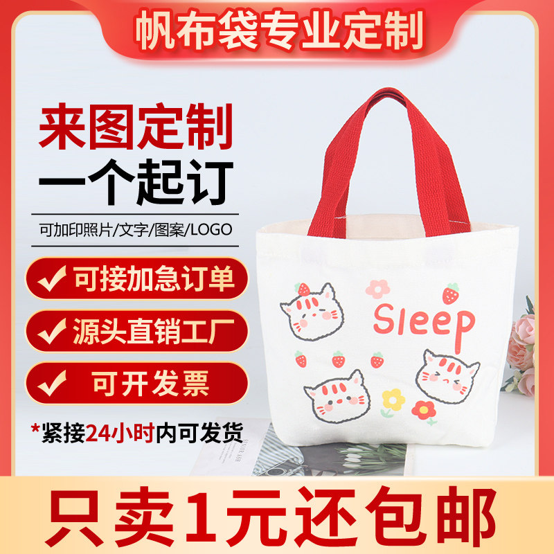 迷你便携学生生日伴手礼帆布袋定制logo小清新可爱手拎帆布包定做