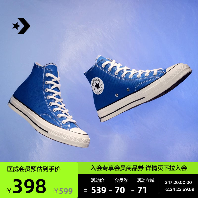 CONVERSE匡威官方 1970S男女运动高帮帆布鞋克莱因蓝蓝色A06529C