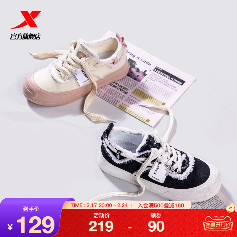 特步帆布鞋女鞋冬季新款低帮厚底硫化时尚滑板运动鞋百搭休闲鞋子