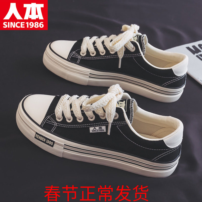 人本帆布鞋男鞋休闲男款人本鞋百搭潮鞋运动鞋子男士板鞋黑色布鞋