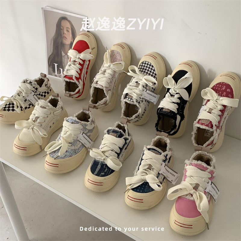奶fufu的鞋子女小白鞋2024春季新款爆款帆布板鞋学生百搭厚底百搭