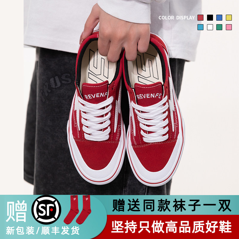 复仇风暴REVENFEX SPOTM闪电红帆布鞋时尚潮流板鞋子男鞋秋季新款