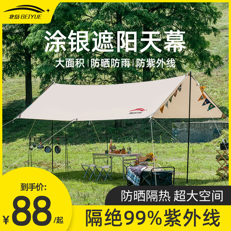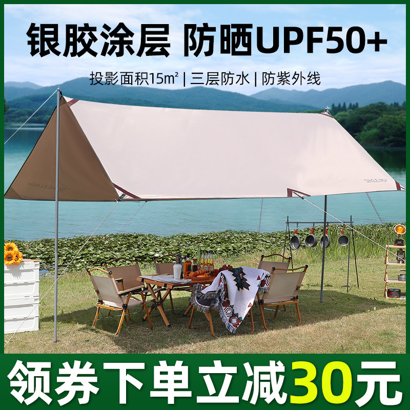 [鸿鹄]骆驼户外天幕帐篷便携黑胶防晒防雨遮阳棚野外野餐露营凉棚