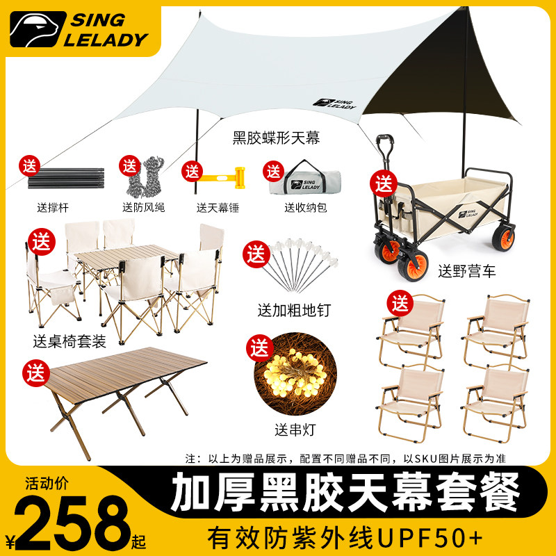 户外黑胶天幕帐篷野外野营桌椅套装露营野餐防雨防风防晒遮阳棚