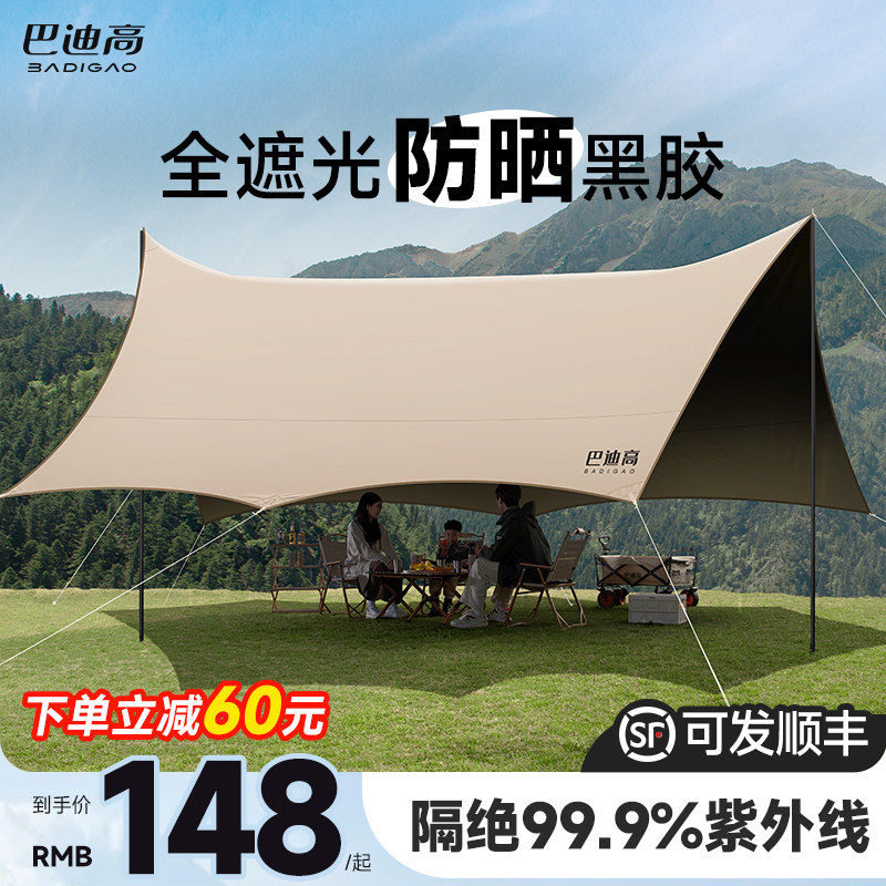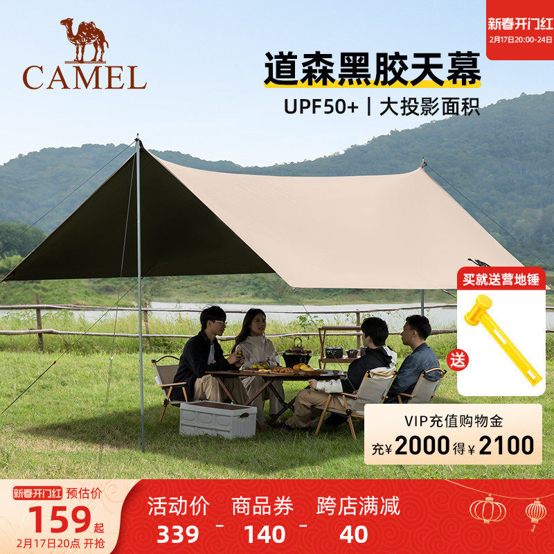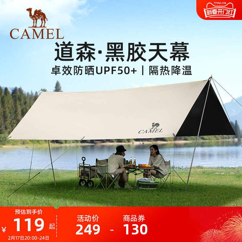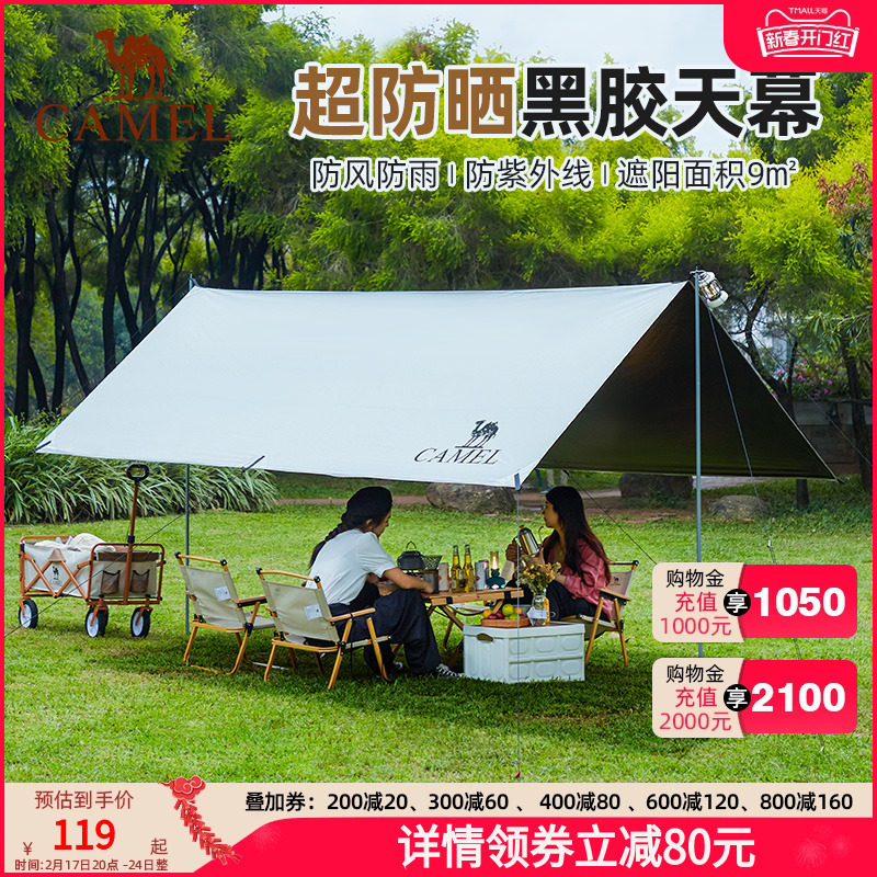 骆驼黑胶天幕户外露营帐篷防雨防晒涂层野营遮阳棚布野外装备全套