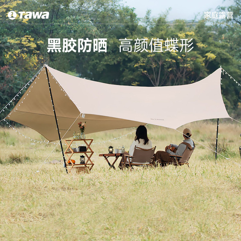黑胶天幕帐篷户外露营防晒涂层沙滩大遮阳棚蝶形专业野营装备全套