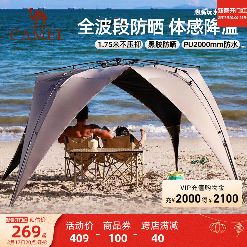 骆驼黑胶溯溪防晒沙滩帐篷海边户外天幕免搭建速开遮阳棚折叠便携