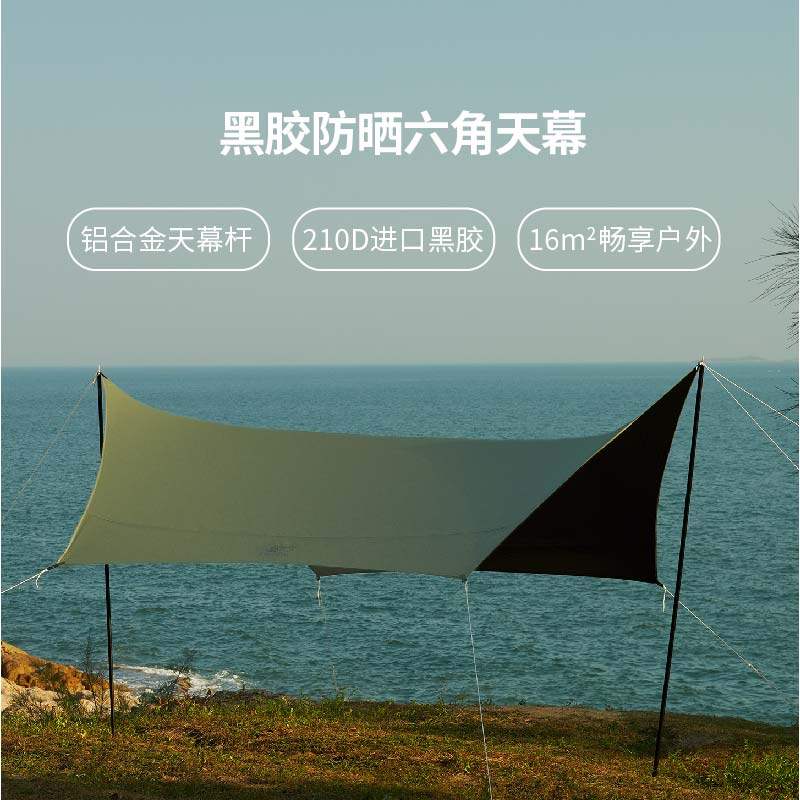 Motata黑胶天幕户外露营防晒帐篷野营轻量化六角防雨幕布遮阳棚