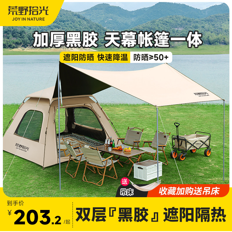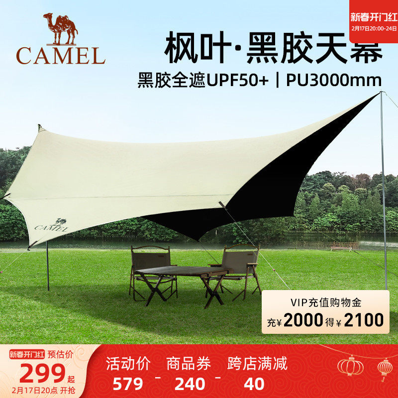 【枫叶】骆驼户外精致露营大型全遮光黑胶防晒天幕帐篷野营遮光棚