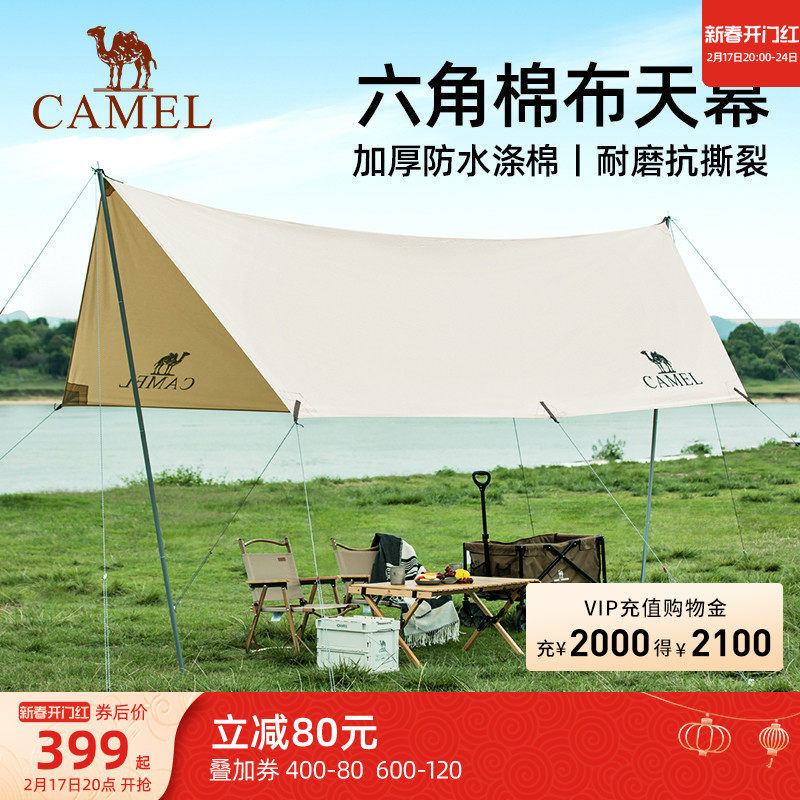 骆驼户外精致露营棉布六角天幕帐篷营地野外野餐凉棚遮阳棚