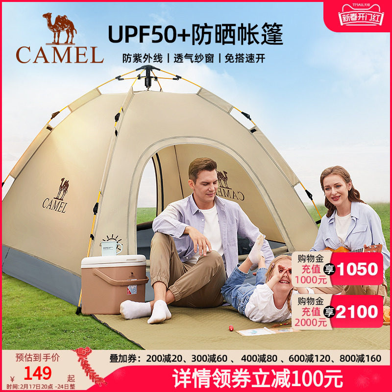 骆驼野营帐篷户外便携式折叠全自动双人防雨加厚野外露营装备全套