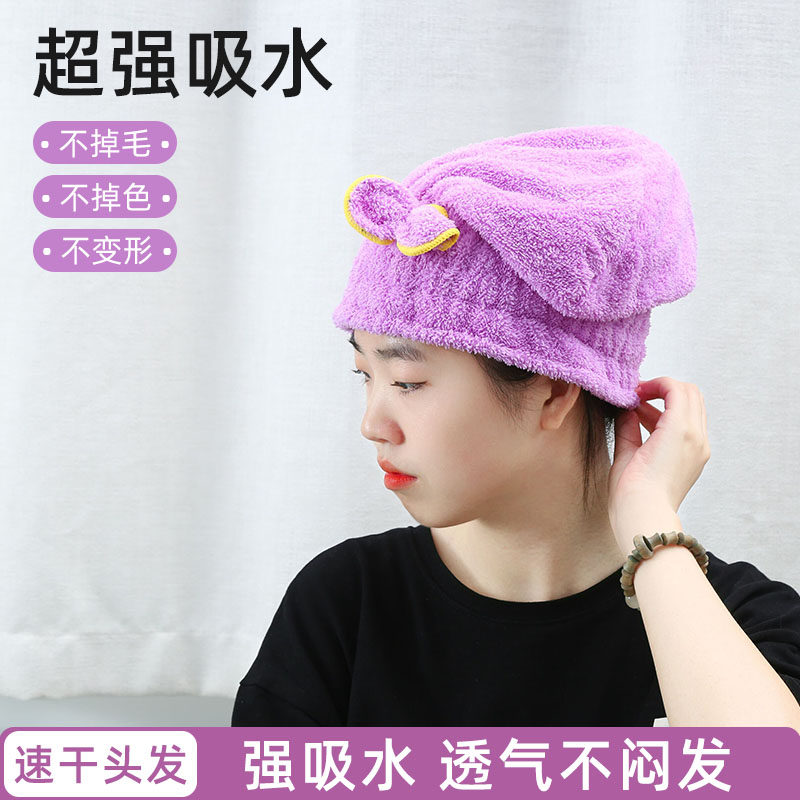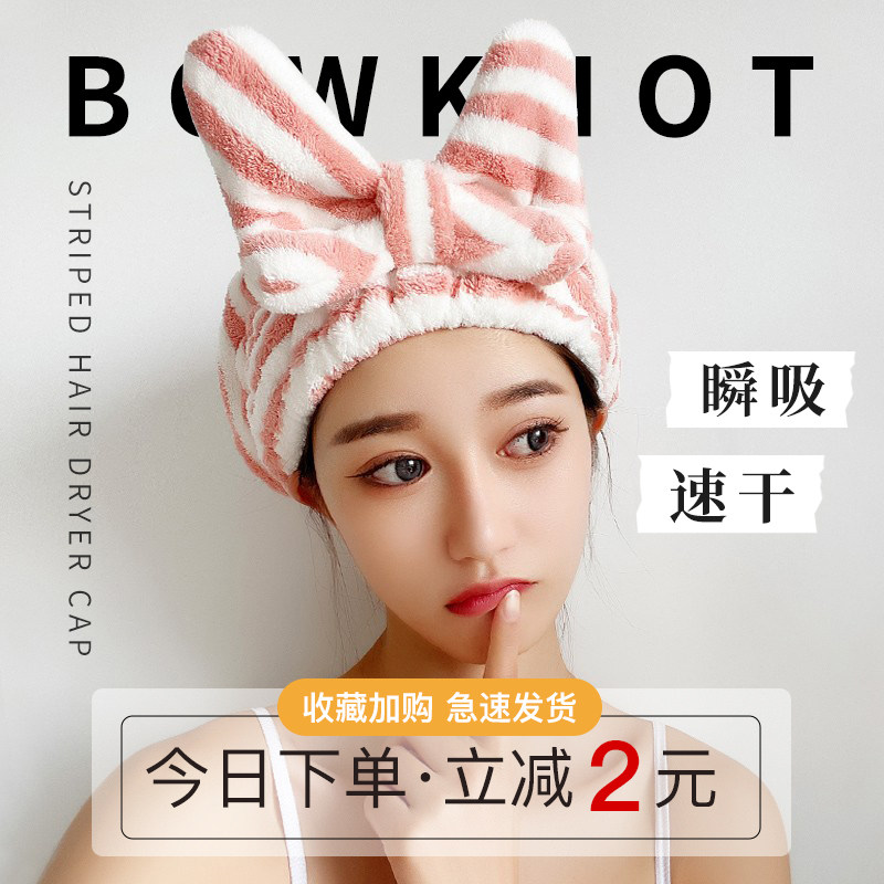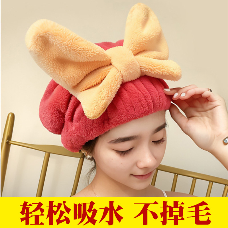 蝴蝶结干发帽浴帽吸水速干家用珊瑚绒包头擦头发神器包头巾干发巾