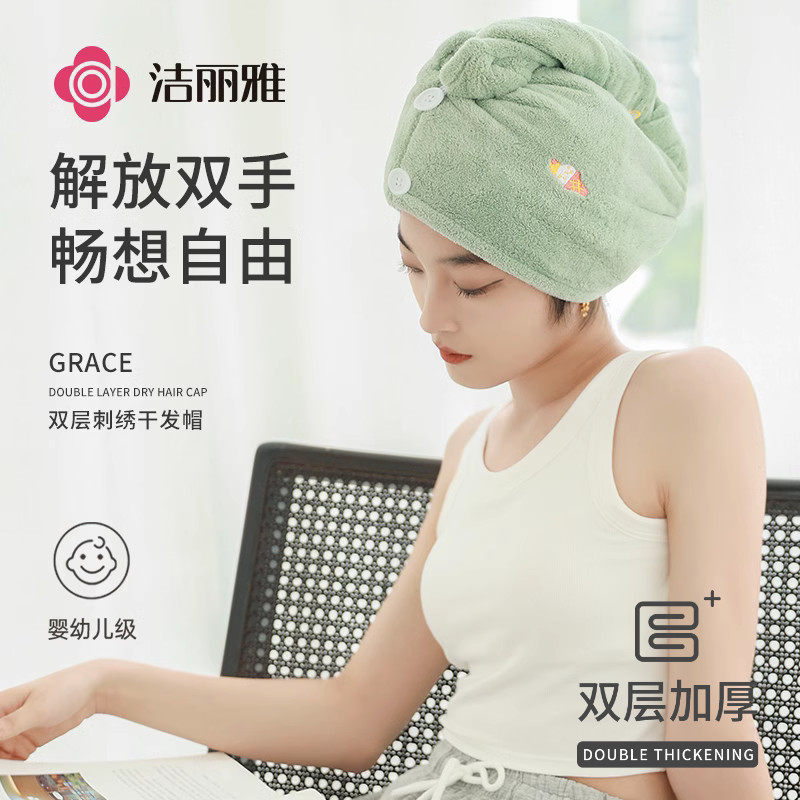 洁丽雅干发帽女超强吸水可爱速干包头双层加厚浴帽干发巾2023新款