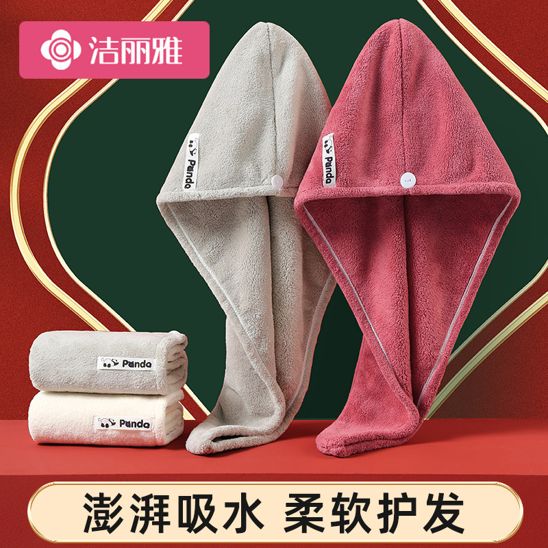 洁丽雅干发帽女超强吸水速干可爱卡通熊猫加厚包头巾干发毛巾浴帽