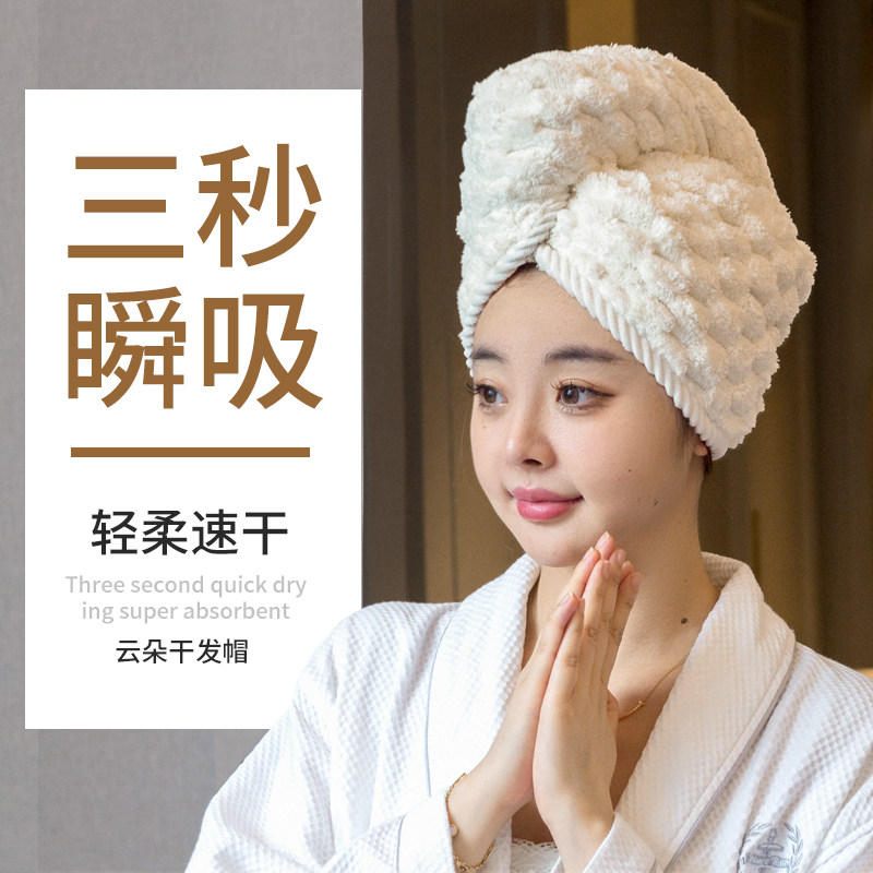 双层加厚柔软干发帽女吸水速干发巾擦头发云朵珊瑚绒浴帽包头毛巾