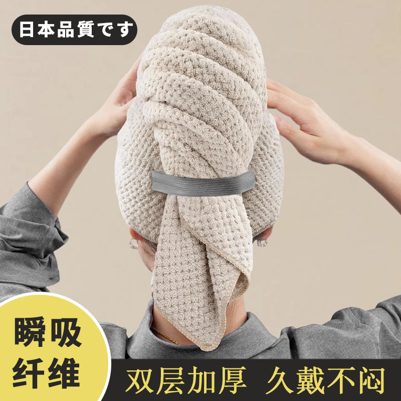日本干发帽超强吸水速干加厚纯棉包头巾帽子浴帽女擦洗头毛巾免吹