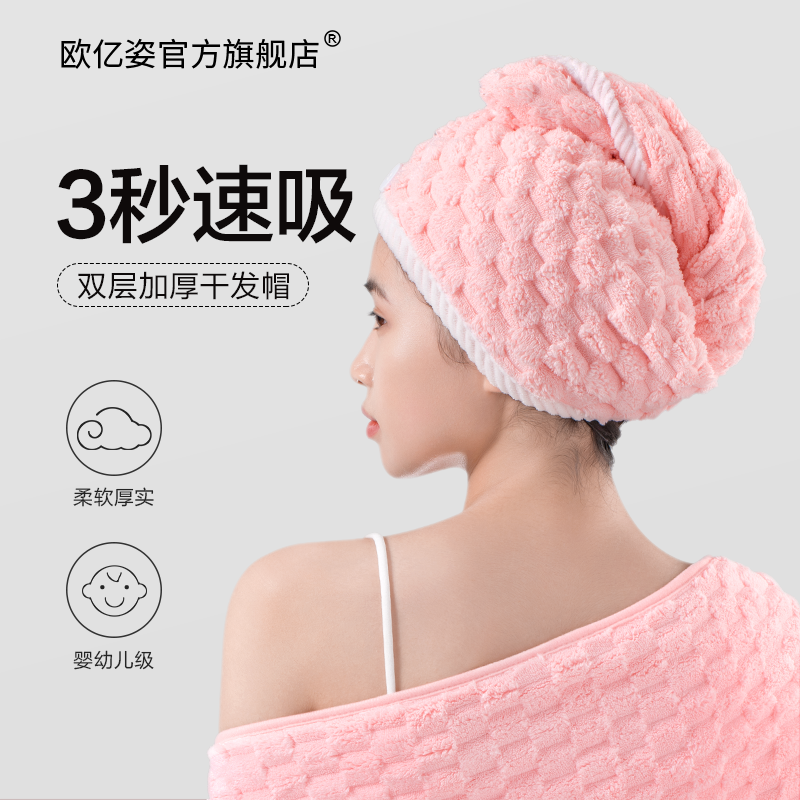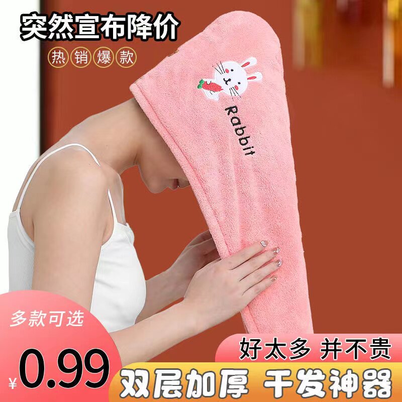 双层加厚干发帽女吸水速干超强吸头发水毛巾可爱浴帽擦长发包头巾