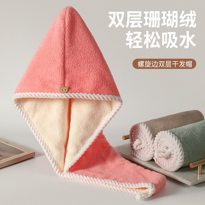 加厚珊瑚绒干发帽女超强吸水洗包头巾懒人速干双面可用可爱干发巾