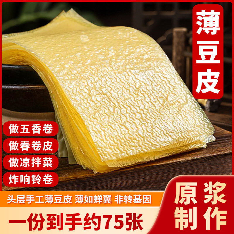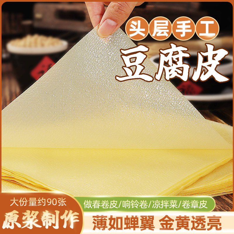 头层豆腐皮卷蝉翼手工油豆皮干货千张春卷皮五香肉卷皮腐竹皮商用