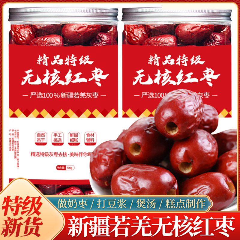 新疆无核红枣特级去核红枣免洗空心若羌灰枣红枣干货泡水打豆浆