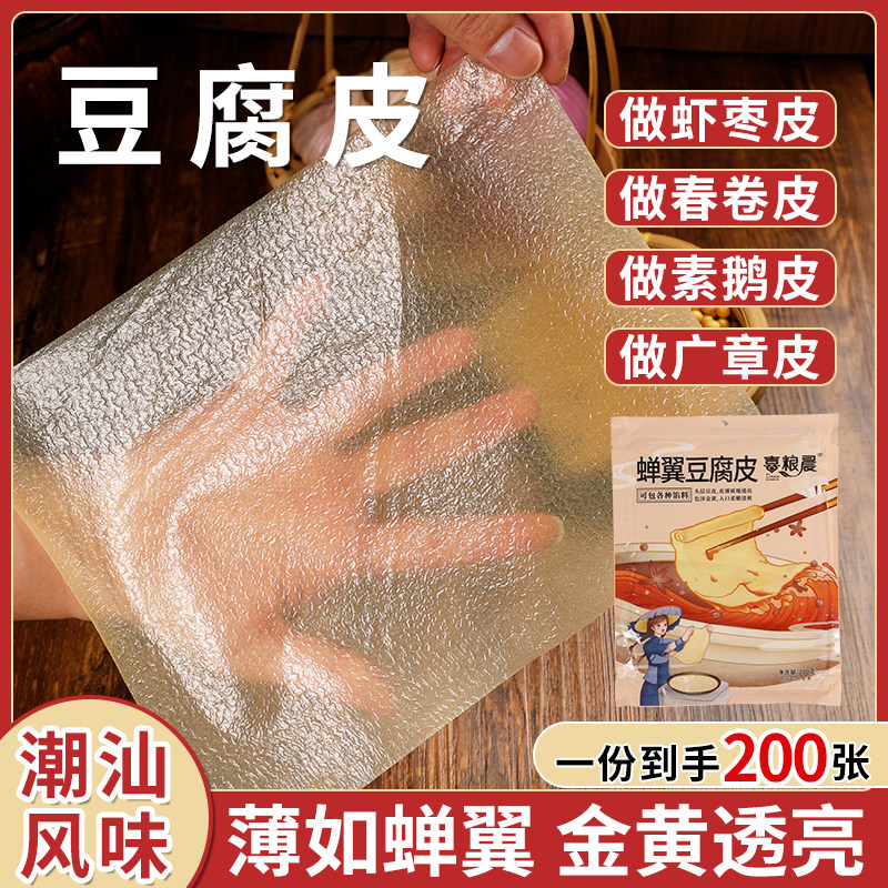 蝉翼豆腐皮豆皮肉卷豆腐衣手工头层油豆皮干油皮腐竹干货潮汕腐膜