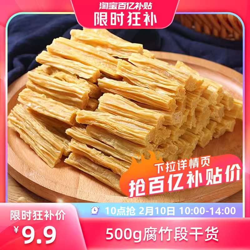 【10点抢】500g黄豆腐竹段干货头层原浆手工豆制品火锅凉拌菜食材